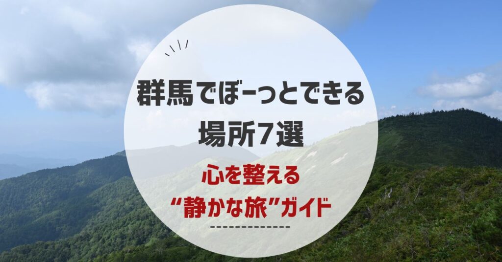 最近、「何もしたくない」「ただ静かに過ごしたい」と感じていませんか。 そんな時におすすめなのが、自然豊かな群馬で過ごす“ぼーっと時間”です。群馬には、心が疲れたときにそっと包み込んでくれる静かな場所がたくさんあります。 以下の表では、今すぐ... -